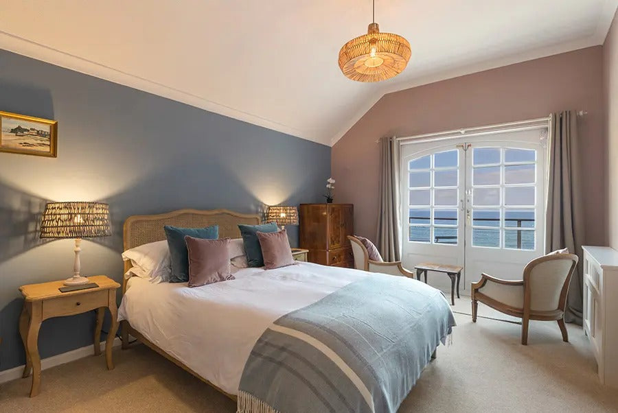 Nestled between a lush emerald forest and the rolling waves of Waterwynch Bay in beautiful Wales, Bay View House is a soothing and private retreat from the world. This is the place to go offline and unwind as peregrines swoop overhead and bottle-nose dolphins peek above the sea foam.